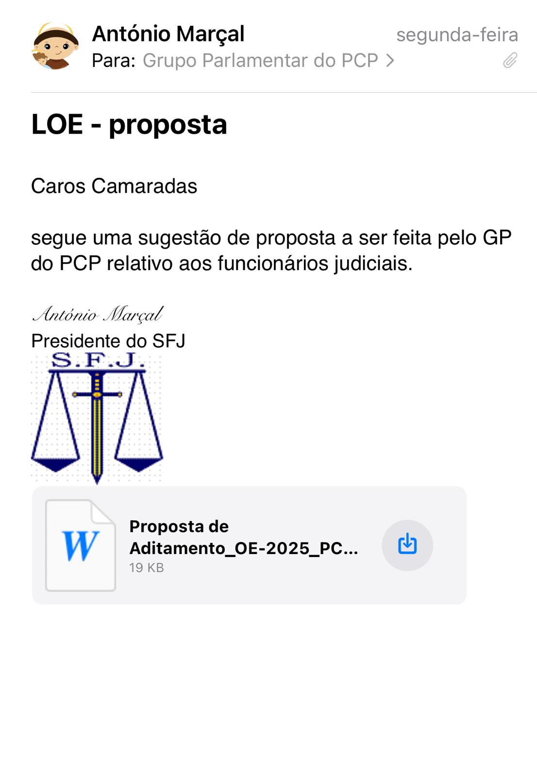 Para que não haja dúvidas, disponibilizamos o printscreen dos emails enviados pelo presidente do SFJ, na sequência das reuniões que tivemos com aqueles partidos.
