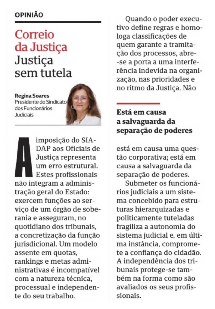 Submeter os funcionários judiciais a um sistema concebido para estruturas hierarquizadas e politicamente tuteladas fragiliza a autonomia do sistema judicial e, em última instância, compromete a confiança do cidadão. A independência dos tribunais protege-se também na forma como são avaliados os seus profissionais.